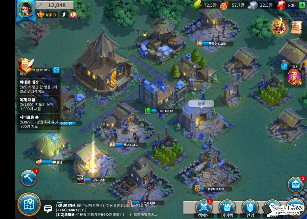 보유한 사령관의 레벨을 올리고 추가적인 자원을 획득하기 위해 야만인을 약탈하거나 채집을 하는 것도 좋지만 다양하게 준비되어 있는 캠페인을 통해 획득도 가능합니다. 보유하고 있는 사령관을 필두로 훈련시킨 병사들을 부대로 구성해 전투를 진행하게 됩니다.