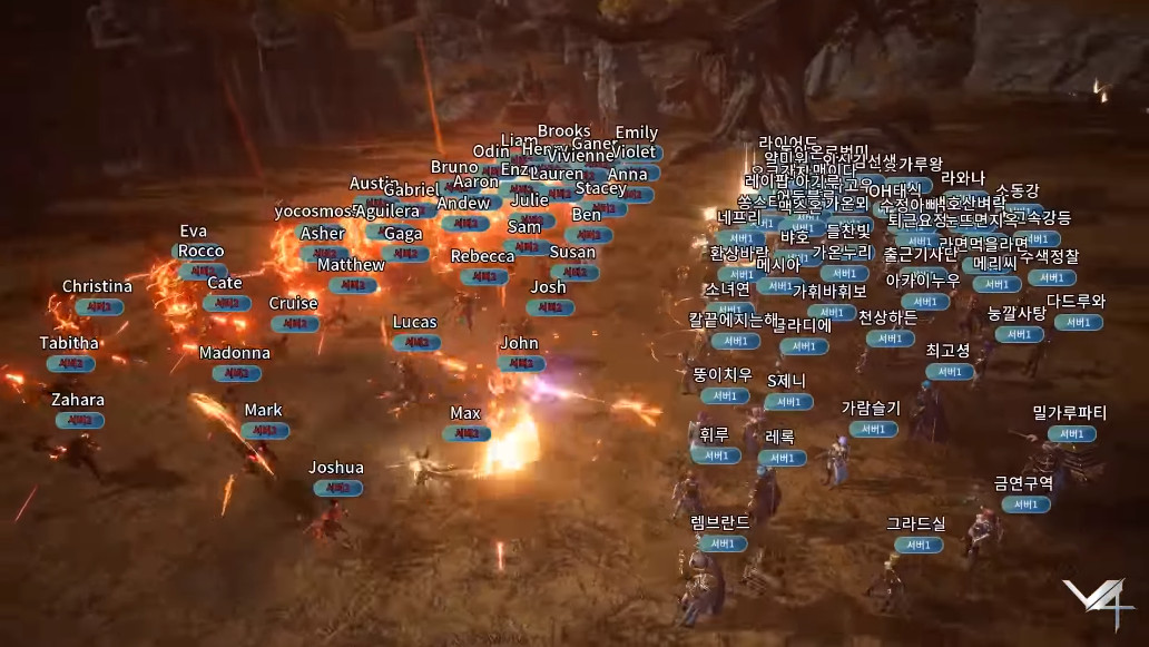 V4는 최대 300명의 플레이어가 동시에 전투를 진행할 수 있도록 설계된 점, 영상에서도 짐작할 수 있는 것처럼 많은 인원이 한 곳에 모여 전투를 펼치더라도 문제가 될 만한 기술적 결함 없이 완벽하게 플레이가 되는 걸 엿볼 수 있었습니다.