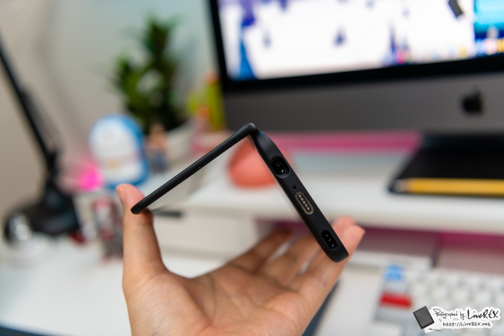 하단에서도 색다름을 확인할 수 있는데요. 기기 자체는 USB-C 충전 방식을 갖지만 듀얼스크린과 연결을 하게 되면 그 충전에 '젠더'가 필요합니다. ▼