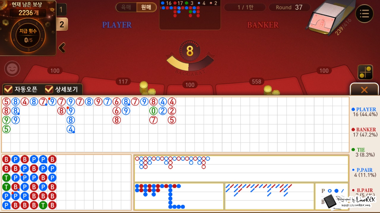 조금 첨언을 하면, 경우 '기록표'를 확인할 수가 있어요. 처음에는 눈이 잘 가지 않지만 이를 통해 결과를 어느 정도 예측할 수도 있습니다. 조금이라도 많은 승리를 얻고 싶다 하는 분들은 이런 것도 잘 체크해 두시면 좋을 것 같네요. ▼