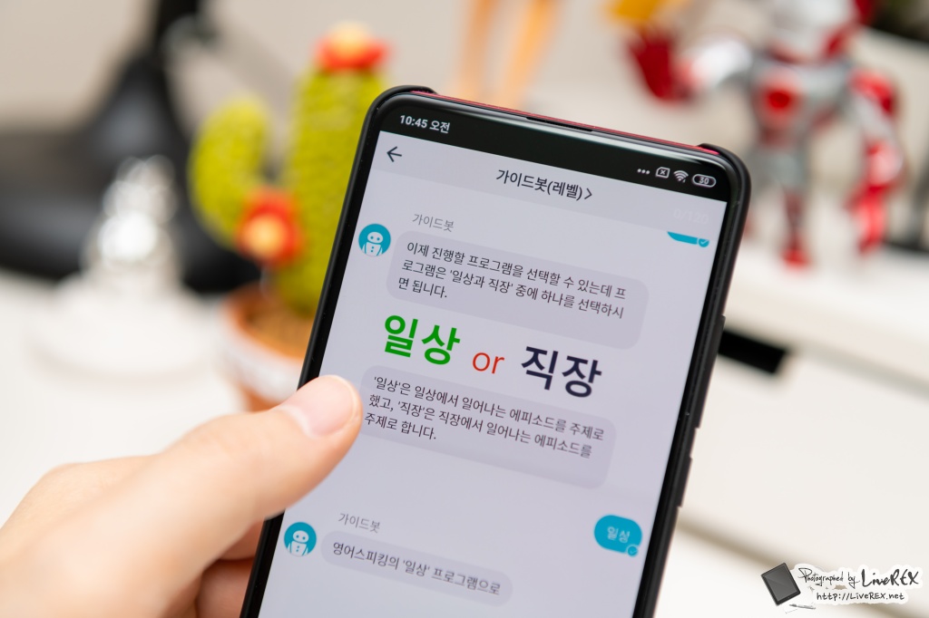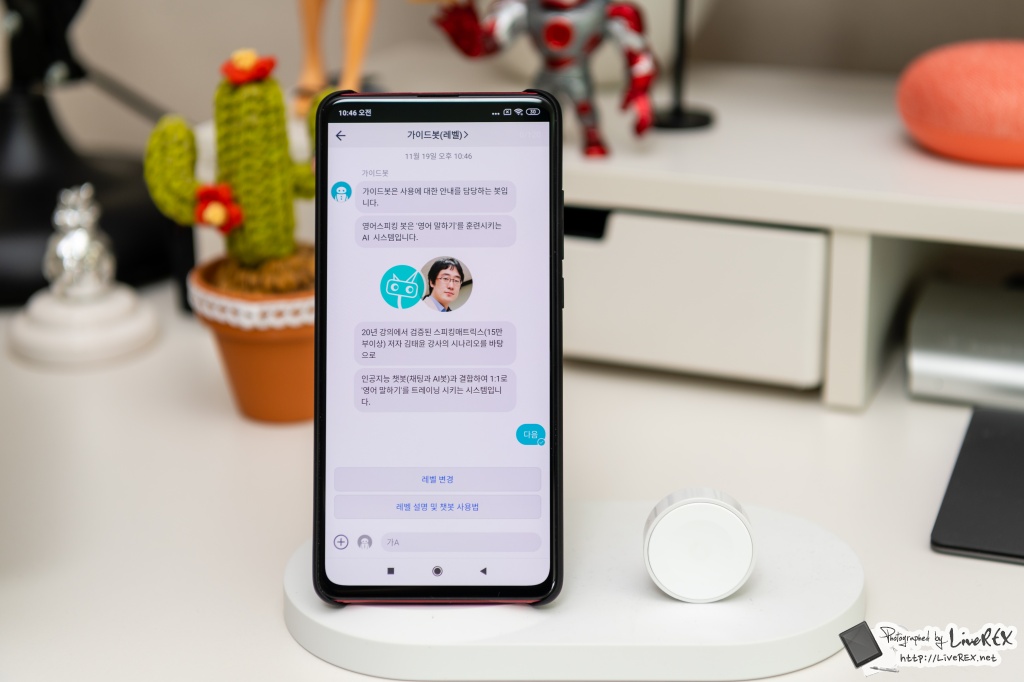 지난 글에서 소개해드린 것처럼 유봇 영어스피킹 앱은 영어 스피킹 전문 강사인 김태윤 강사를 AI 봇으로 만들어서 1:1로 영어 훈련을 할 수 있도록 만든 앱입니다.