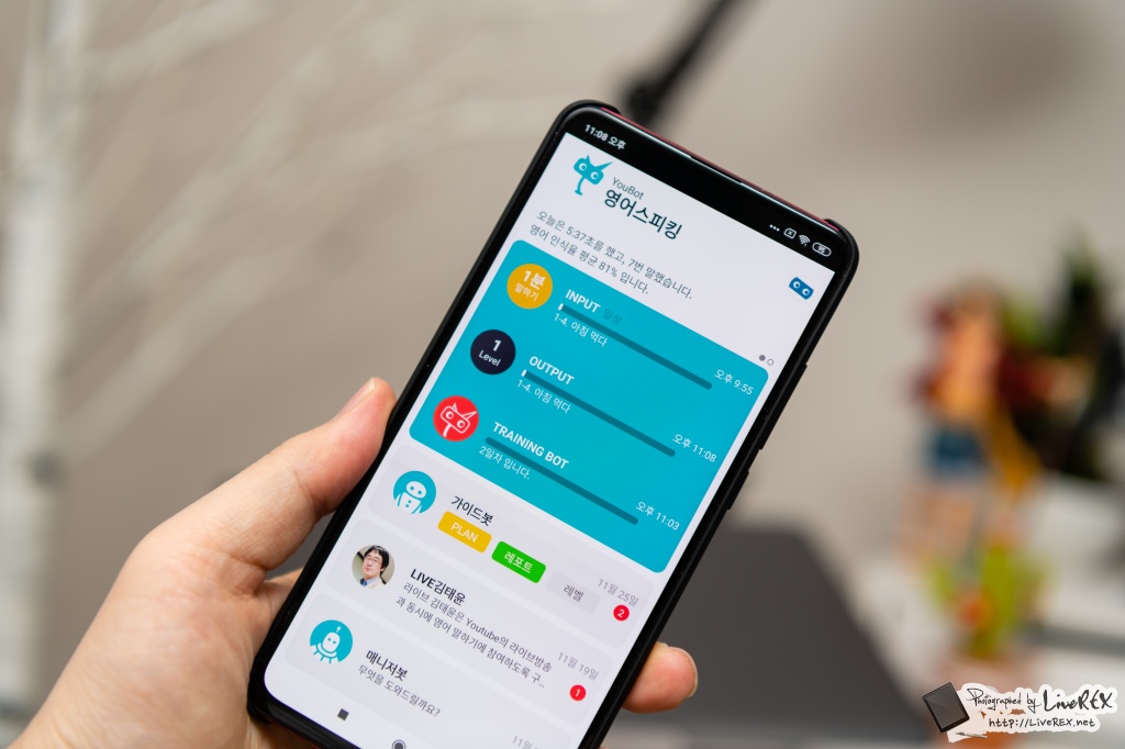 그리고 모든 이들이 그렇겠지만, 사회 생활을 하면서 시간을 빼 이런 공부를 한다는 게 쉬운 건 아니죠? 유봇 (youbot) 영어스피킹 앱은 정말 딱 본인이 가능한 시간에 틈틈히 조금씩이라도 꾸준히 해나갈 수 있어서 부담은 최소화 하면서 영어회화를 익혀갈 수 있다는 점이 강점으로 체감되었습니다.