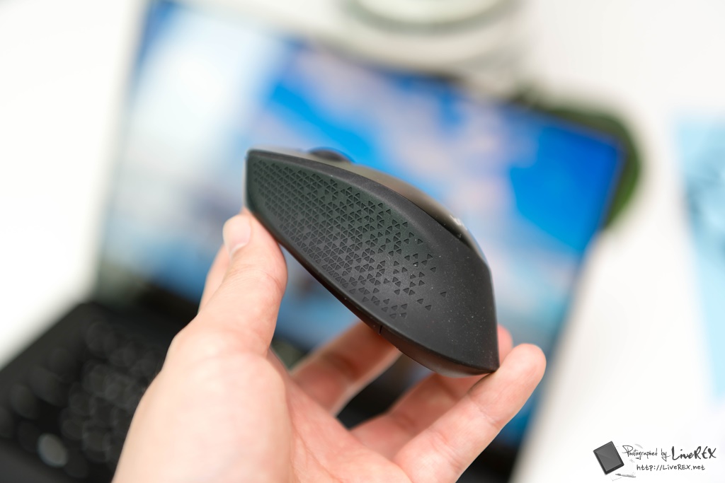 흔히 떠올리는 소형 마우스 대비 좀 더 부피가 있습니다. 그리고 오른손으로 마우스를 쥐는 분들께 좀 더 안정적인 그립감을 제공하는 형태를 보이고 있는데요. 그래서일까요? 제 입장에서는 상당히 만족스러움을 가질 수 있었어요. ▼