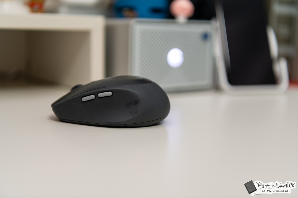 참고로, 수신거리는 최대 10미터로 웬만한 환경에서는 신호 간섭 없이 활용이 가능한 수준을 보여주고 있습니다. 그리고 로지텍 고급 옵티컬 센서를 탑재하고 있어서 별도의 마우스 패드가 없더라도 다양한 형태의 표면에서 어렵지 않게 사용할 수 있어요.