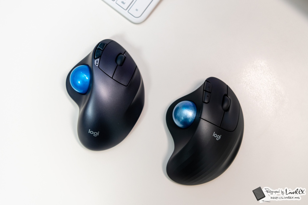 또, 사진에서는 잘 구분이 안될지 모르겠지만 M570 대비 손이 좀 더 안정적으로 놓아지는 듯한 느낌도 있습니다. 개인적으로는 손이 맞닿는 각도가 M575 모델이 좀 더 괜찮아 보였습니다. 그리고 트랙볼 부분도 더욱 부드럽고 안정적인 느낌을 주었습니다.