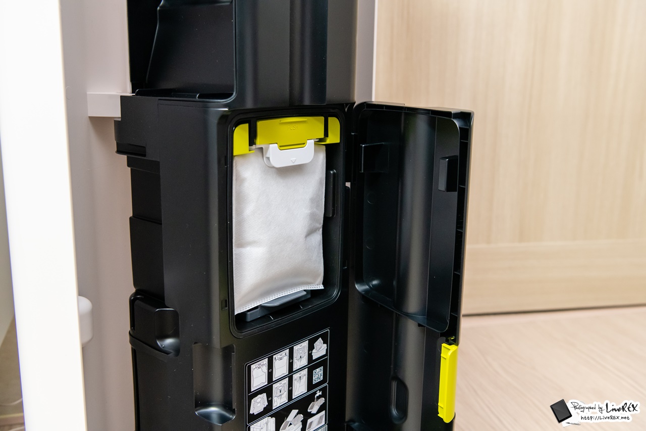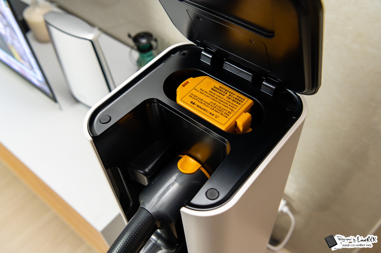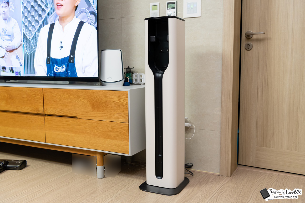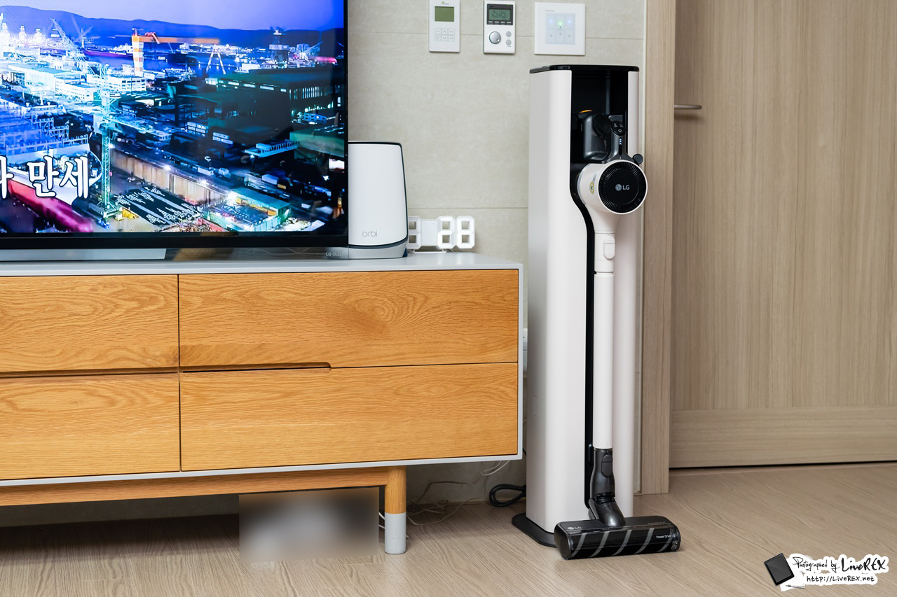 이를 통해 먼지통비움(먼지통 열기-비움-닫기), 충전, 청소기 보관까지 모두 한 번에 가능합니다. 이 모델이 발표될 때 부터 바로 이 올인원타워가 어떤 모습일지 궁금했었는데, 실제로 보니 공간 절약에 인테리어 효과까지 단번에 잡는 영리함이 돋보이더군요.