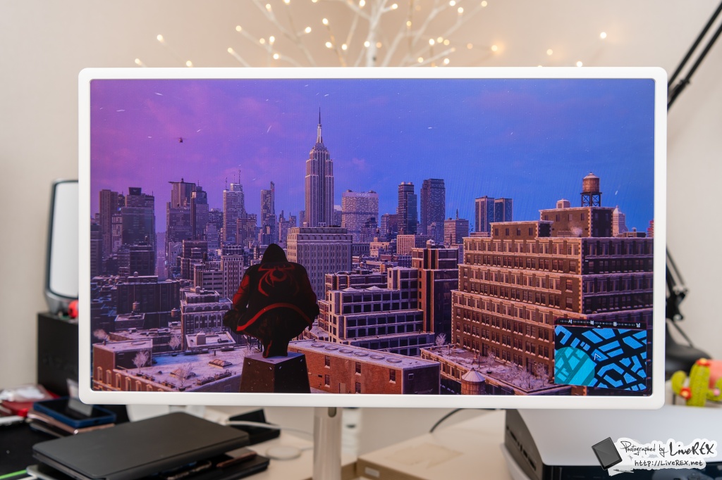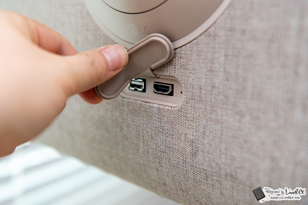 각설하고, 뒷면 아래쪽을 보면 커버로 처리된 부분이 보이는데요. 커버를 들어올리면 그 안으로 USB, HDMI 단자가 있습니다. USB에 콘텐츠 등을 넣어서 바로 사용할 수도 있고, HDMI 연결을 통해 PS5, 닌텐도 스위치 같은 게임도 곧장 즐길 수 있어요.